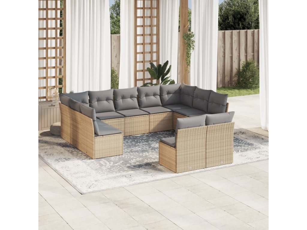 11dílný zahradní sedací souprava s poduškami béžový polyratan 3250188