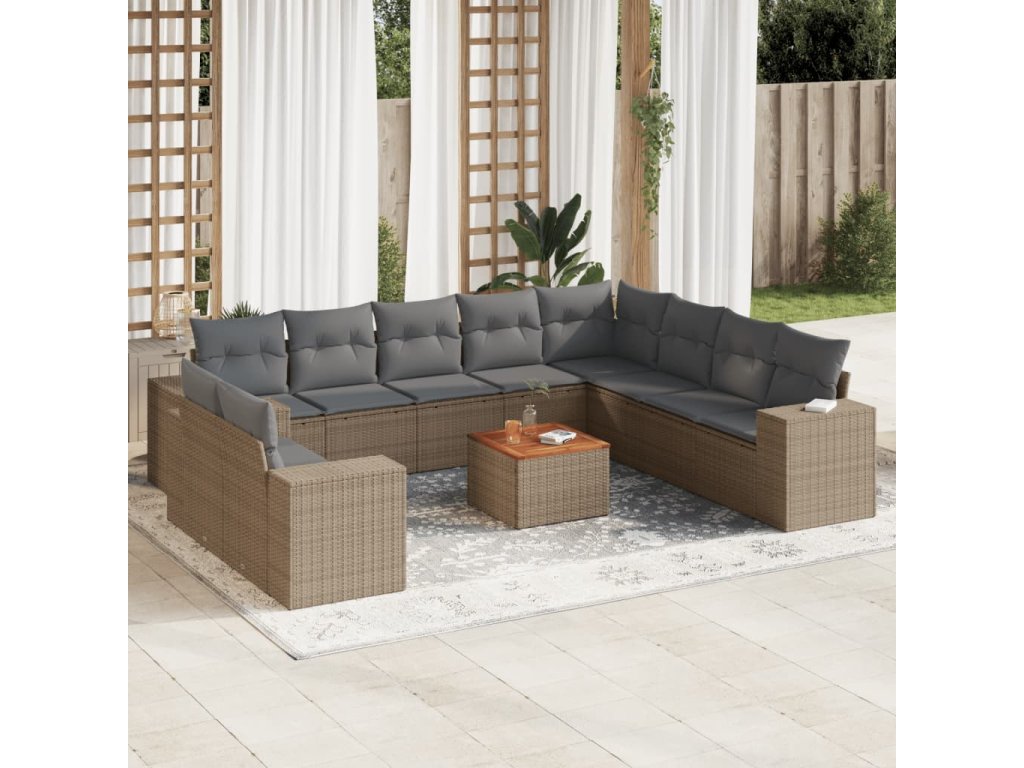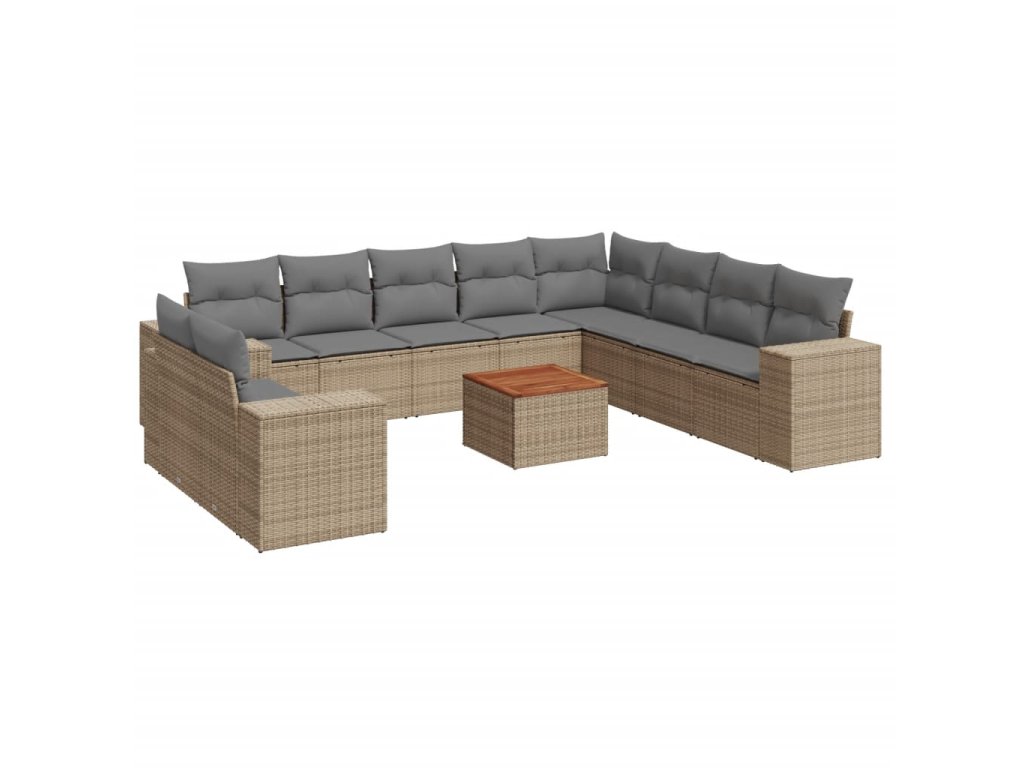 11dílný zahradní sedací souprava s poduškami béžový polyratan 3257851