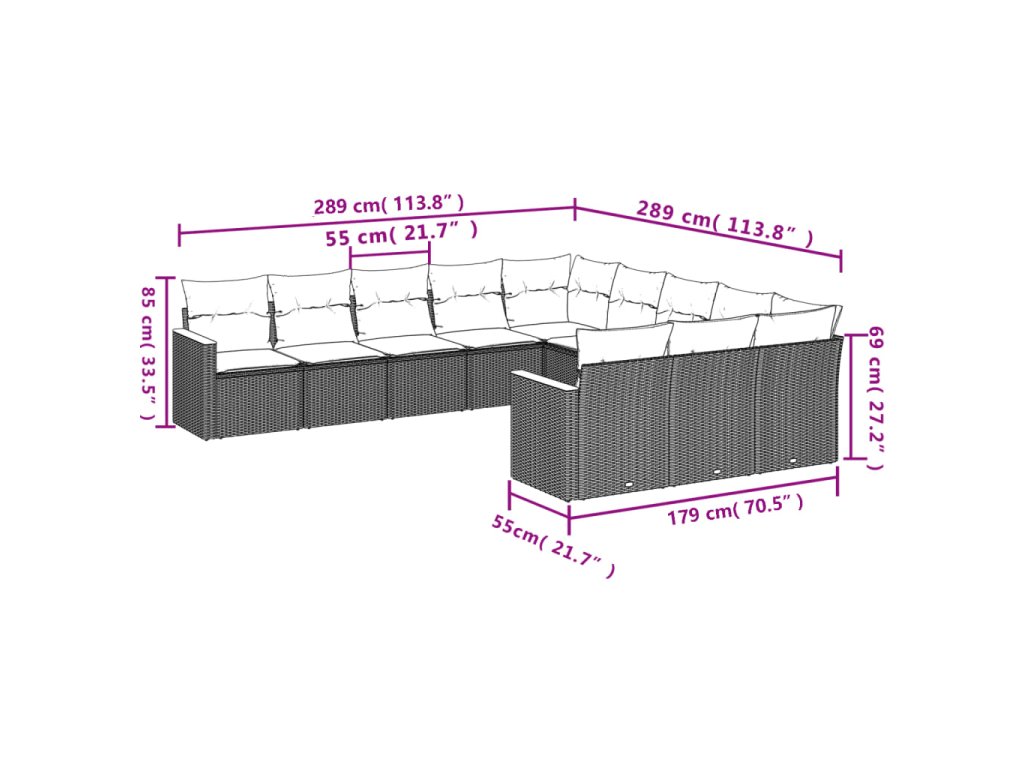 11dílný zahradní sedací souprava s poduškami béžový polyratan 3258831