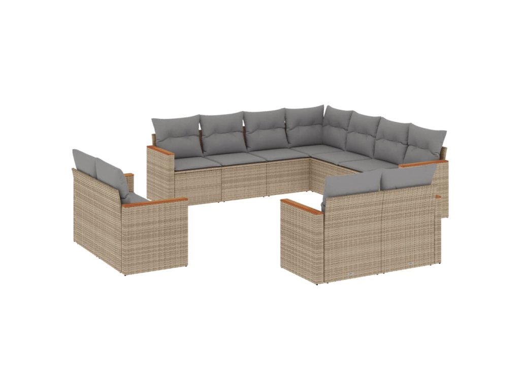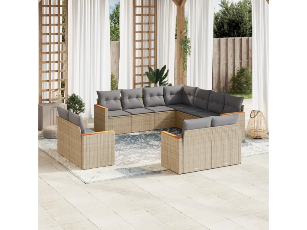 11dílný zahradní sedací souprava s poduškami béžový polyratan 3258902