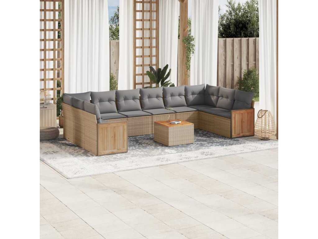 11dílný zahradní sedací souprava s poduškami béžový polyratan 3260414