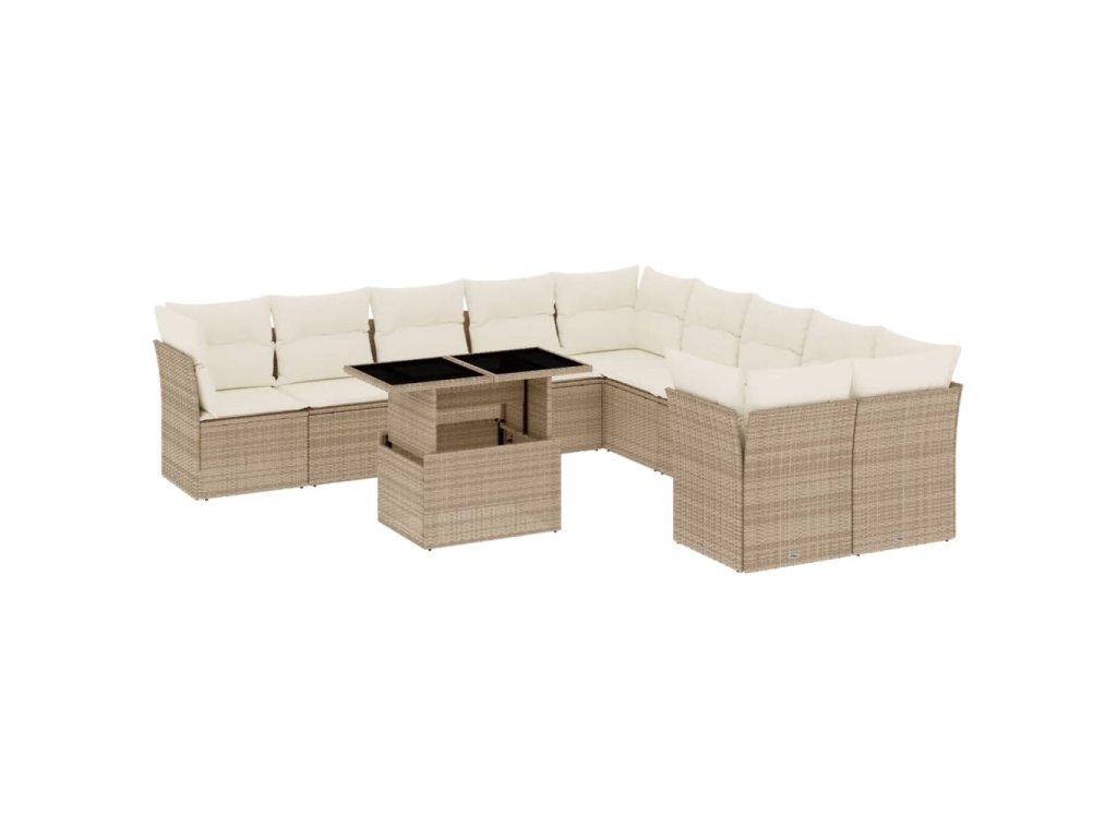 11dílný zahradní sedací souprava s poduškami béžový polyratan 3266878