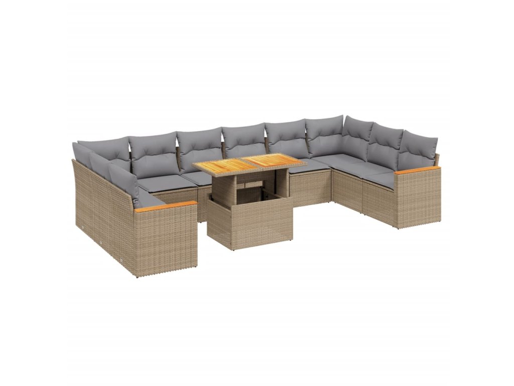 11dílný zahradní sedací souprava s poduškami béžový polyratan 3273250