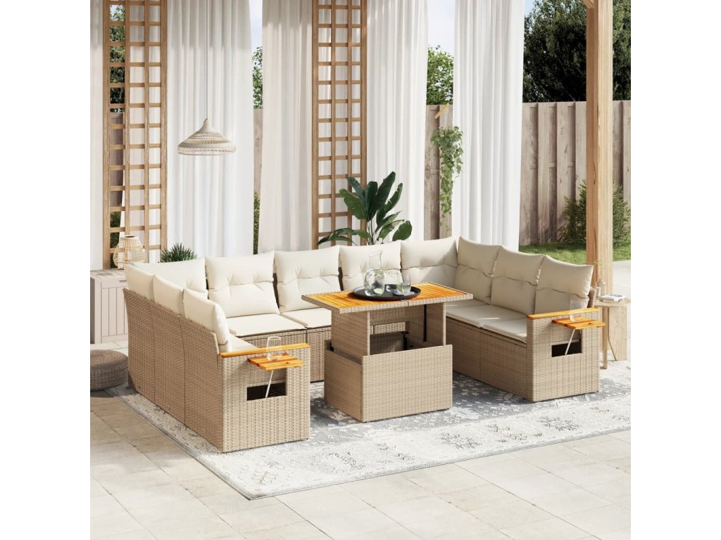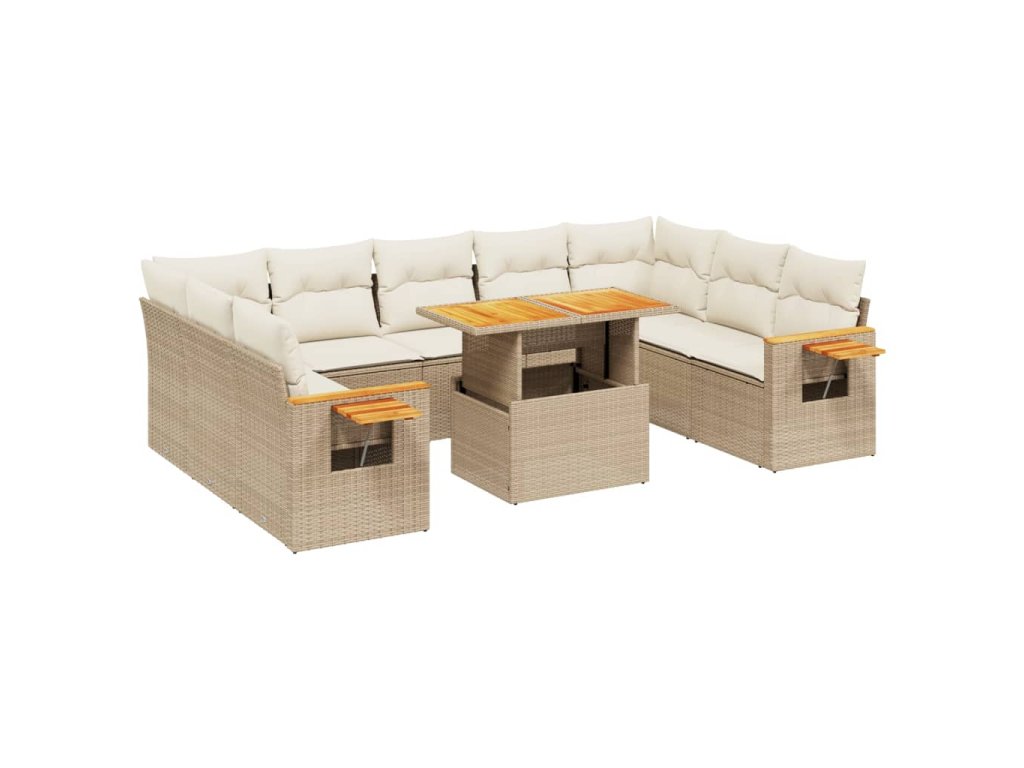 11dílný zahradní sedací souprava s poduškami béžový polyratan 3273690