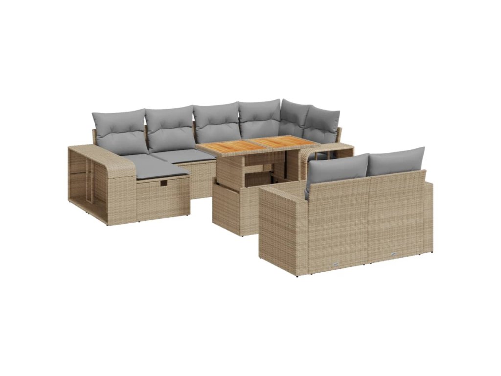 11dílný zahradní sedací souprava s poduškami béžový polyratan 3276515