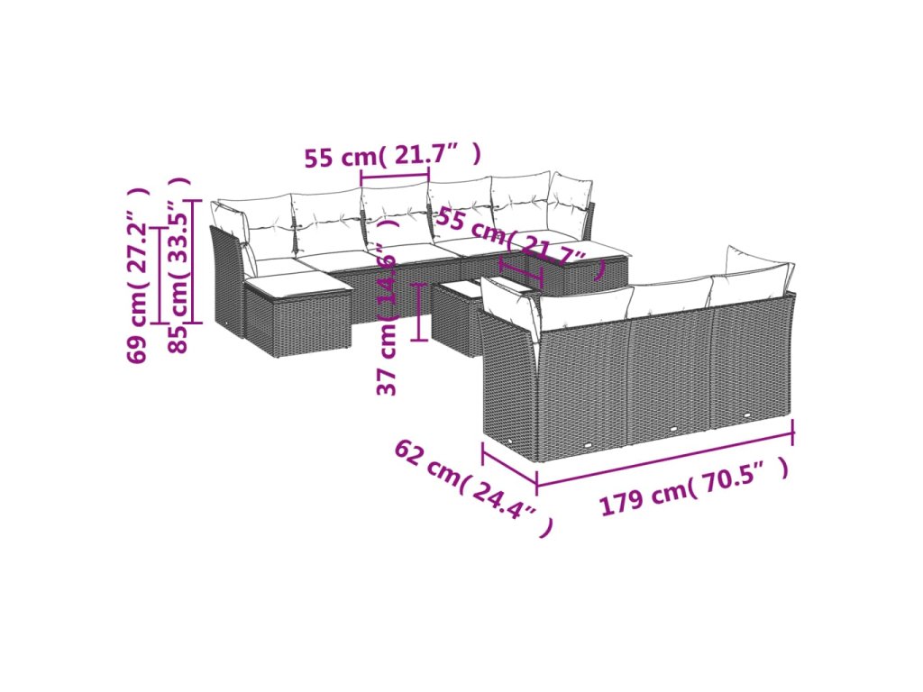 Tato zahradní sedací souprava je dokonalým doplňkem vaší zahrady, terasy nebo dvorku a poskytne vám pohodlné a příjemné místo, kde si můžete povídat s rodinou a přáteli nebo jen tak odpočívat a užívat si pobyt venku.