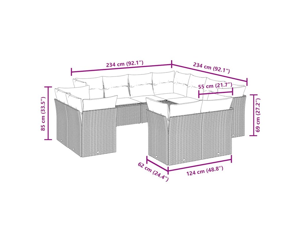 Tato zahradní sedací souprava je dokonalým doplňkem vaší zahrady, terasy nebo dvorku a poskytne vám pohodlné a příjemné místo, kde si můžete povídat s rodinou a přáteli nebo jen tak odpočívat a užívat si pobyt venku.