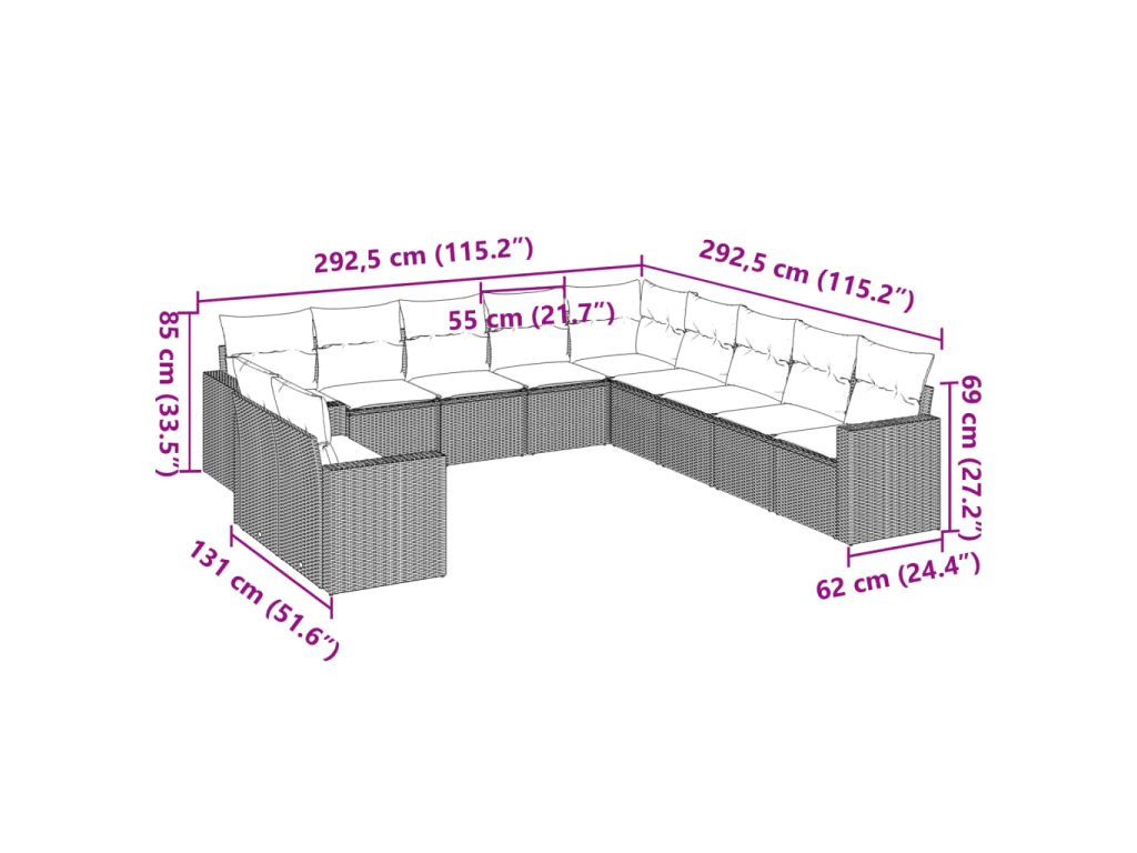 Tato zahradní sedací souprava je dokonalým doplňkem vaší zahrady, terasy nebo dvorku a poskytne vám pohodlné a příjemné místo, kde si můžete povídat s rodinou a přáteli nebo jen tak odpočívat a užívat si pobyt venku.