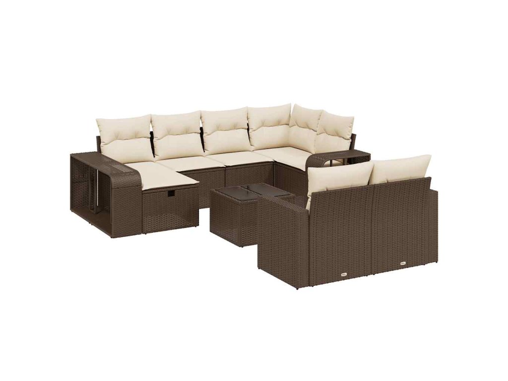 11dílný zahradní sedací souprava s poduškami hnědý polyratan 3266253