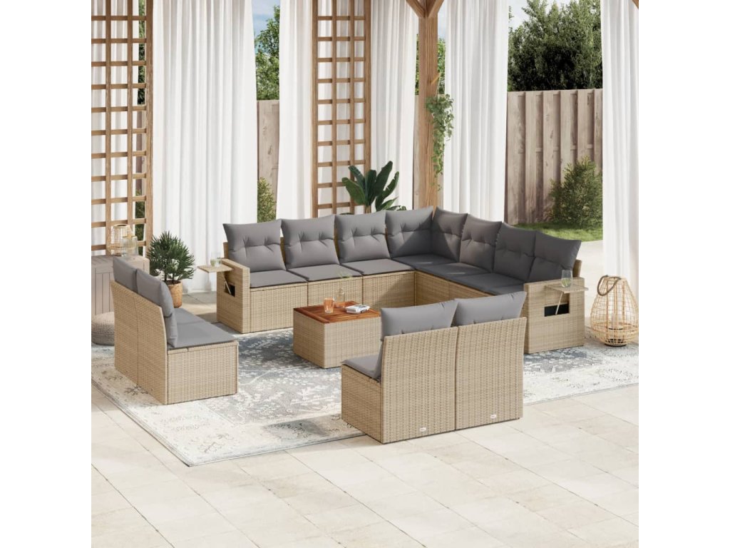 12dílná zahradní sedací souprava a podušky mix béžové polyratan 3256955
