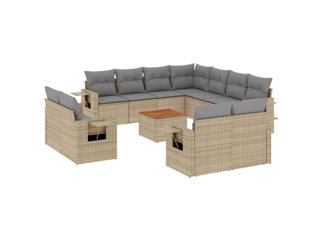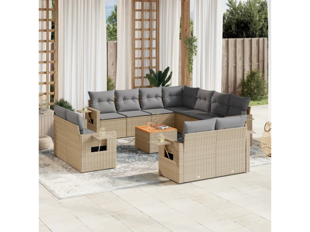 12dílná zahradní sedací souprava a podušky mix béžové polyratan 3257158