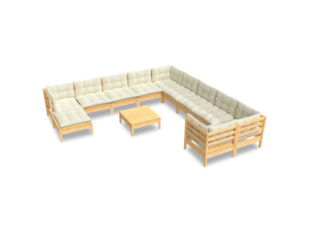 12dílná zahradní sedací souprava krémové podušky borovice 3097061