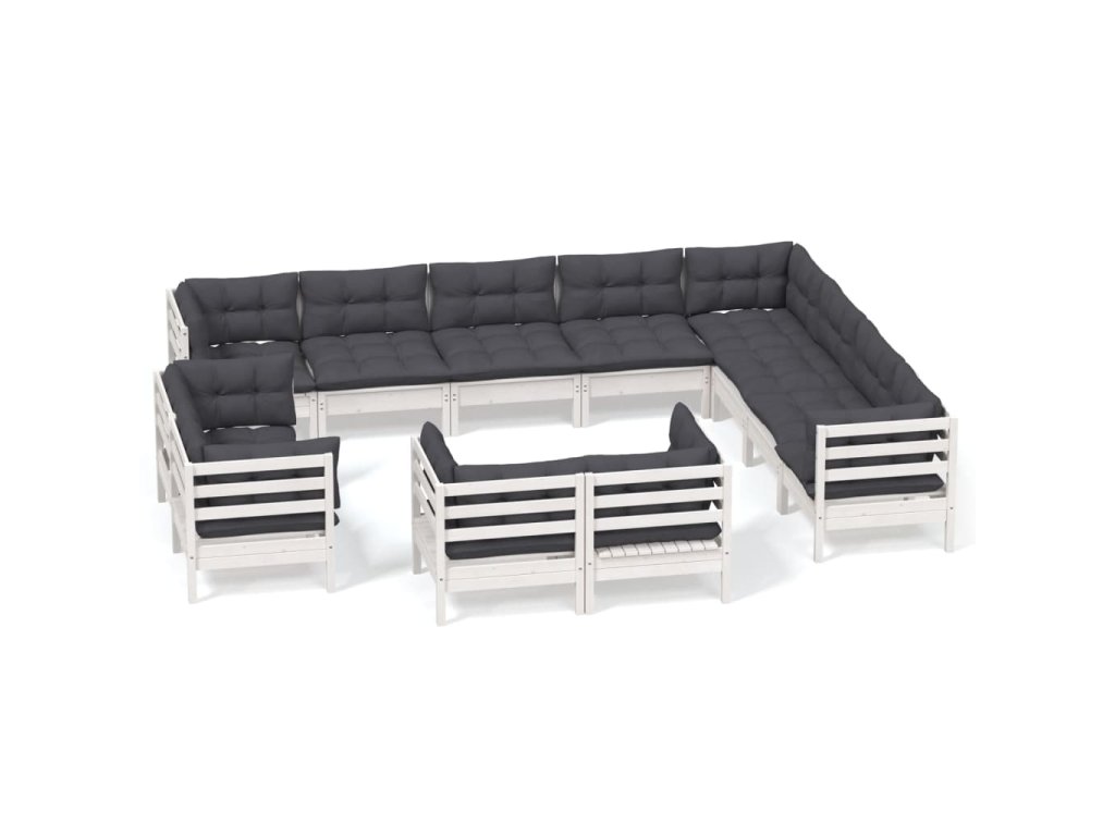 12dílná zahradní sedací souprava podušky bílá masivní borovice 3096948