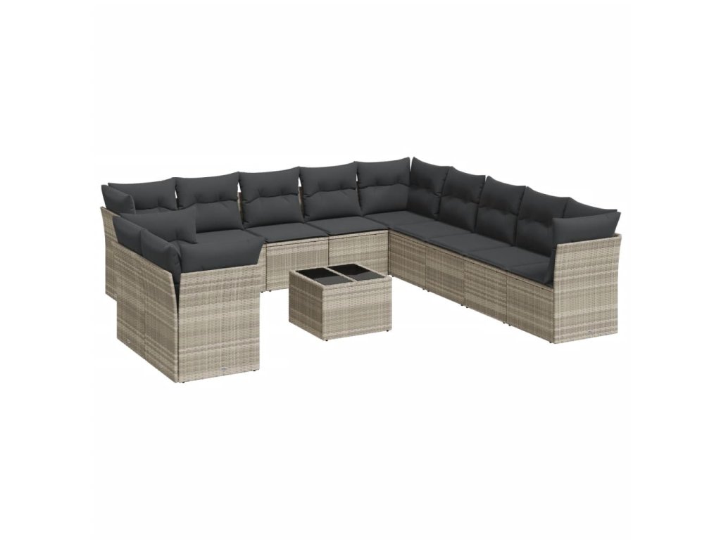 12dílná zahradní sedací souprava podušky světle šedá polyratan 3217892