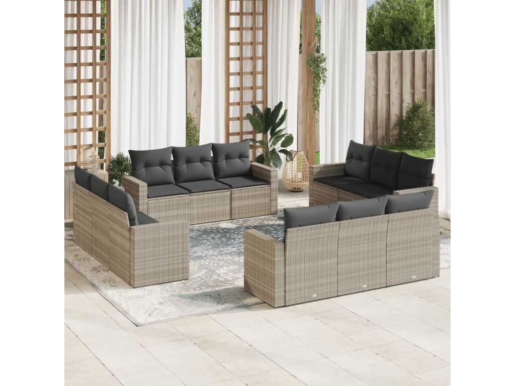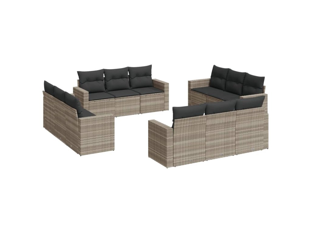 12dílná zahradní sedací souprava podušky světle šedá polyratan 3218762