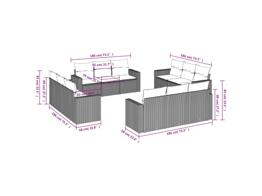 - Modulární design: Tato sada venkovního nábytku se vyznačuje modulární konstrukcí, je tedy zcela flexibilní a lze ji snadno přemisťovat, takže si můžete uspořádat venkovní nábytek dle vašich potřeb.