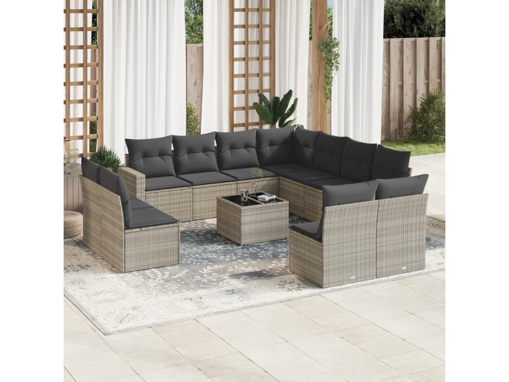 12dílná zahradní sedací souprava podušky světle šedá polyratan 3219132