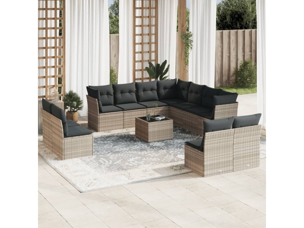 12dílná zahradní sedací souprava podušky světle šedá polyratan 3249671
