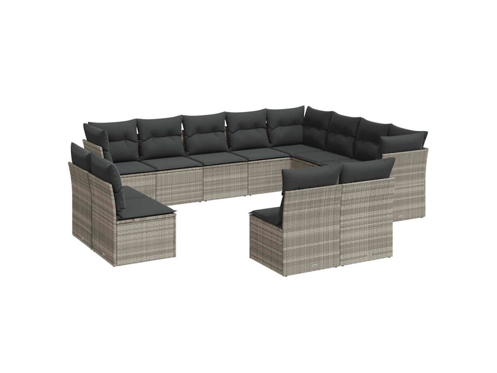 12dílná zahradní sedací souprava podušky světle šedá polyratan 3250311