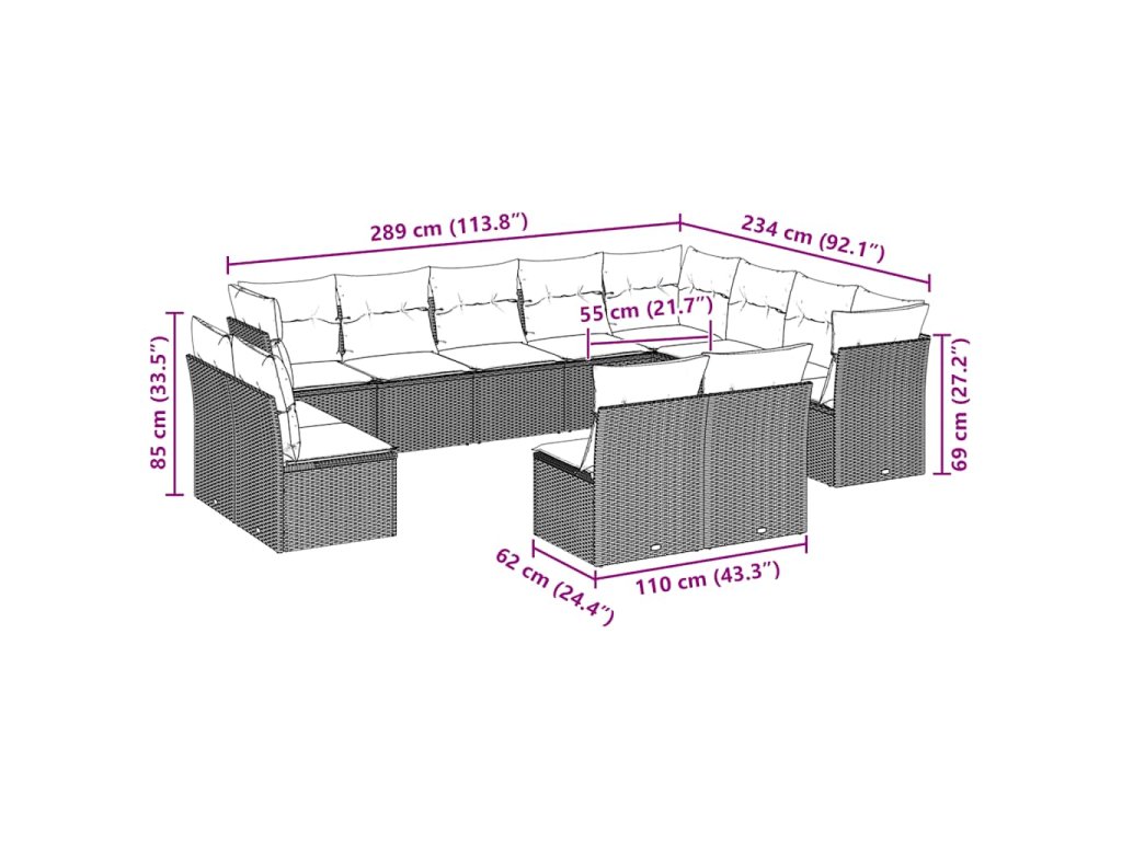 Tato zahradní sedací souprava je dokonalým doplňkem vaší zahrady, terasy nebo dvorku a poskytne vám pohodlné a příjemné místo, kde si můžete povídat s rodinou a přáteli nebo jen tak odpočívat a užívat si pobyt venku.