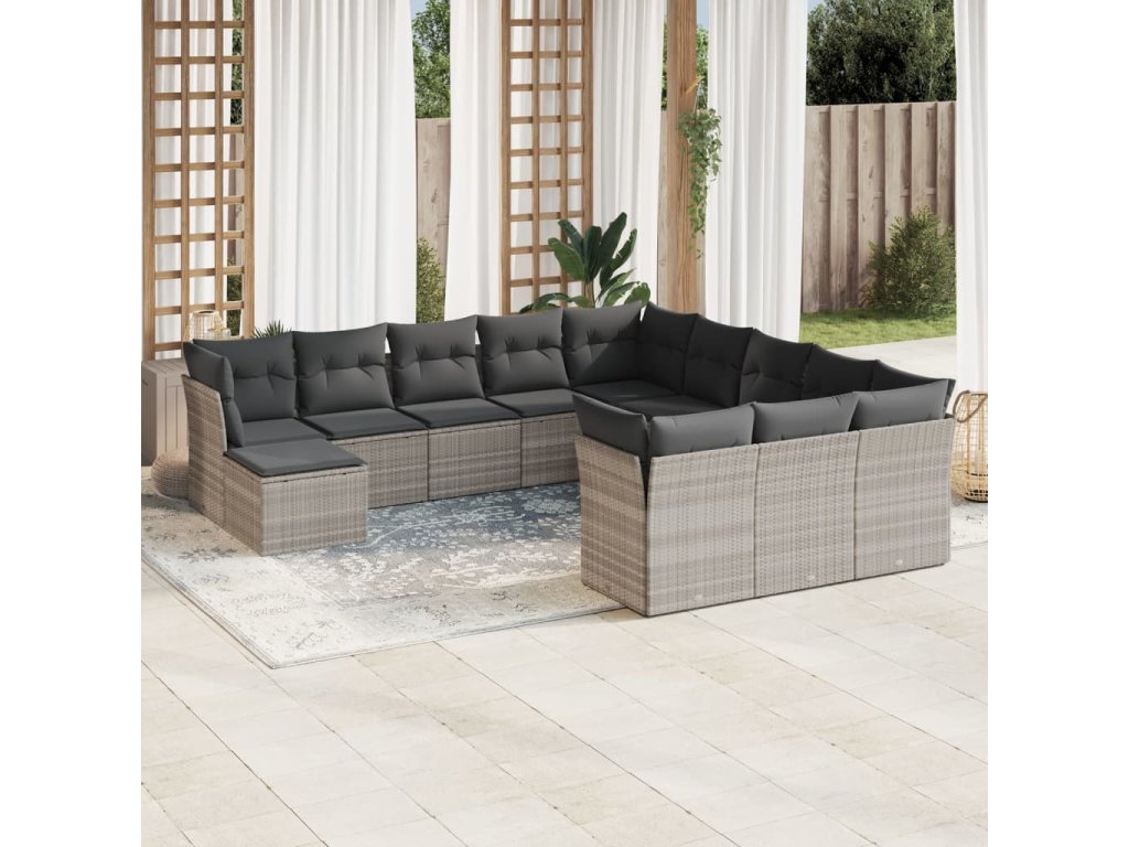 12dílná zahradní sedací souprava podušky světle šedá polyratan 3250471