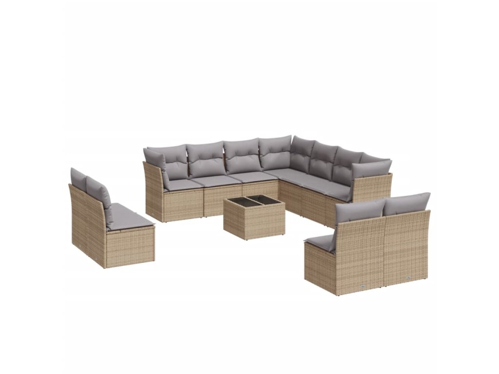 12dílná zahradní sedací souprava s poduškami béžová polyratan 3217829