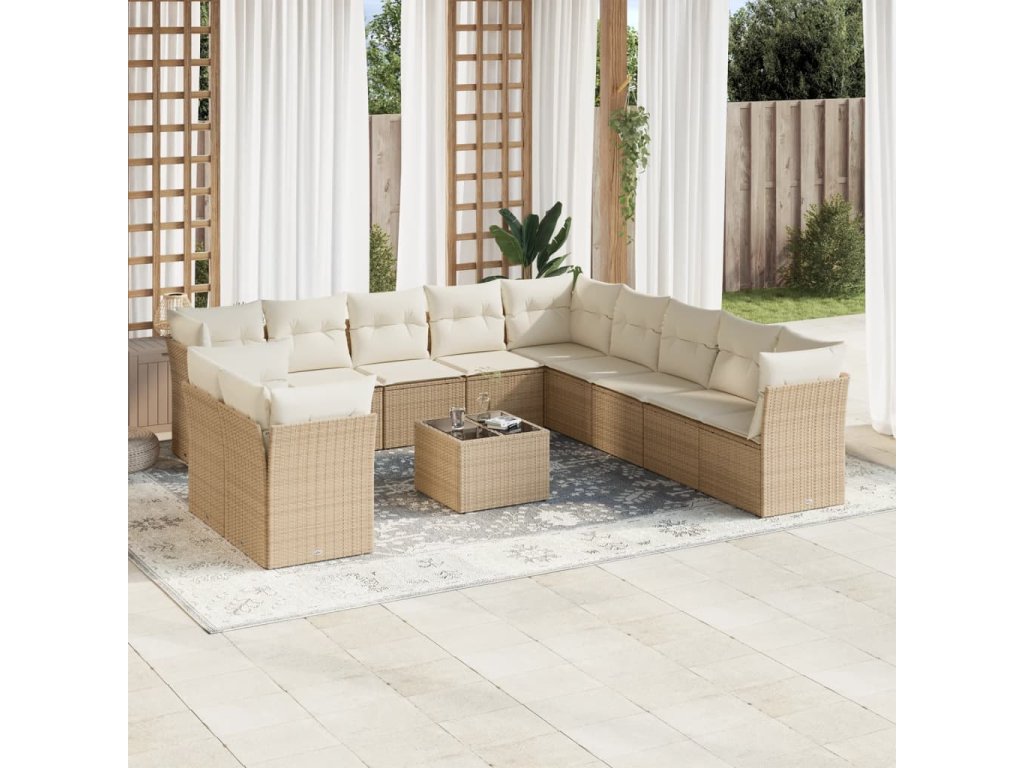 12dílná zahradní sedací souprava s poduškami béžová polyratan 3217888