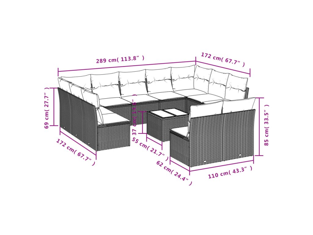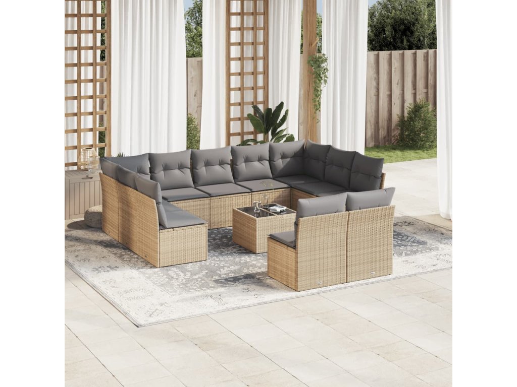 12dílná zahradní sedací souprava s poduškami béžová polyratan 3218359