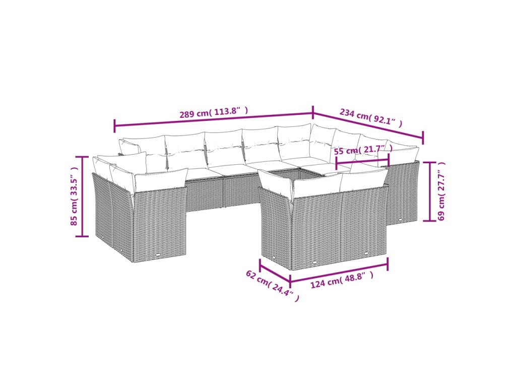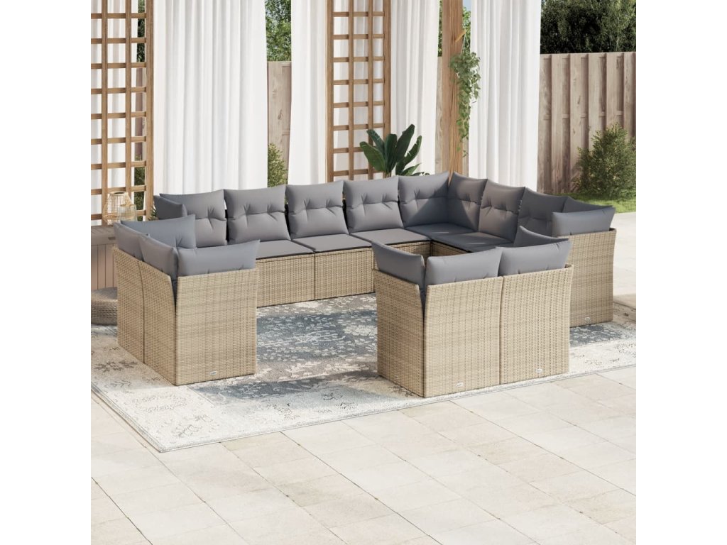 12dílná zahradní sedací souprava s poduškami béžová polyratan 3218529