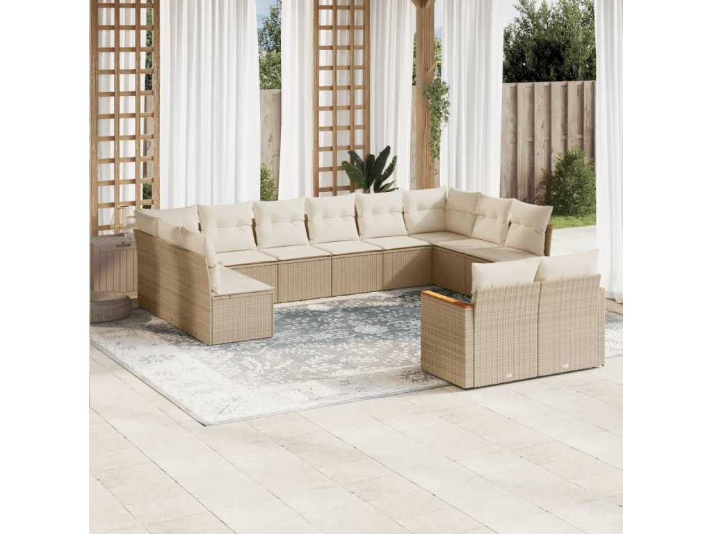12dílná zahradní sedací souprava s poduškami béžová polyratan 3226443