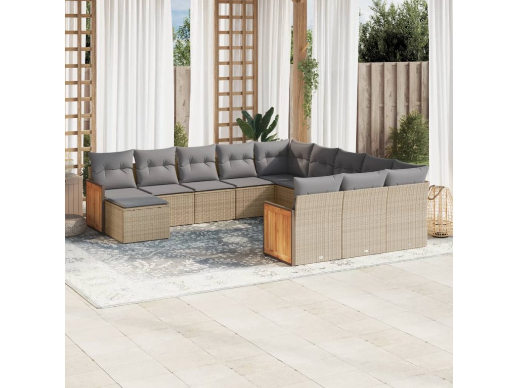 12dílná zahradní sedací souprava s poduškami béžová polyratan 3228264