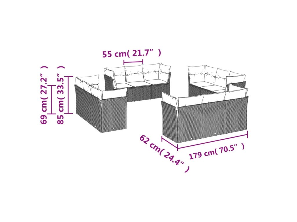 12dílná zahradní sedací souprava s poduškami béžová polyratan 3249167