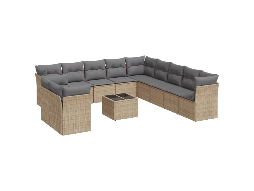 12dílná zahradní sedací souprava s poduškami béžová polyratan 3249728