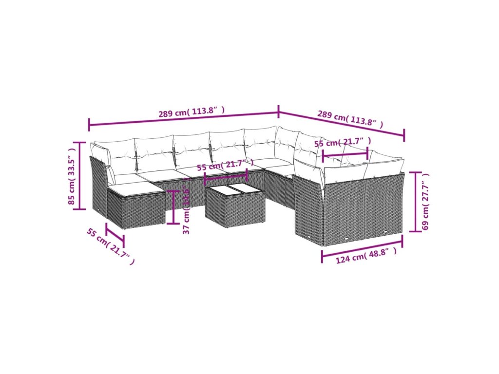 12dílná zahradní sedací souprava s poduškami béžová polyratan 3250458