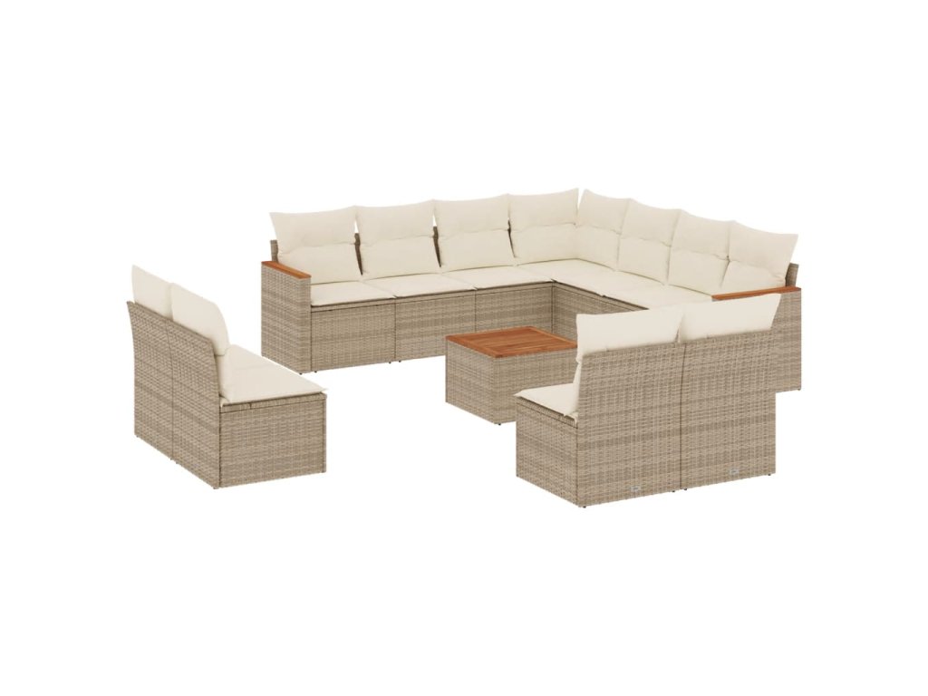 12dílná zahradní sedací souprava s poduškami béžová polyratan 3258495