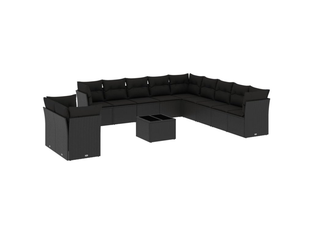 12dílná zahradní sedací souprava s poduškami černá polyratan 3217885