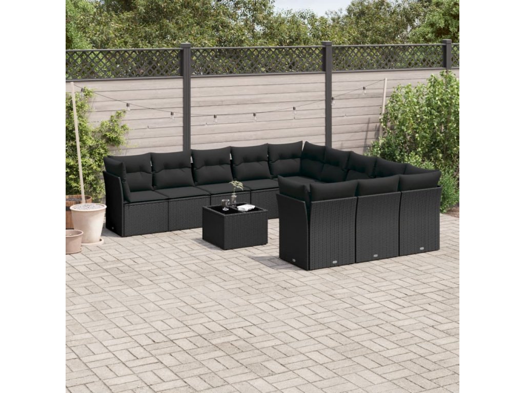 12dílná zahradní sedací souprava s poduškami černá polyratan 3218415