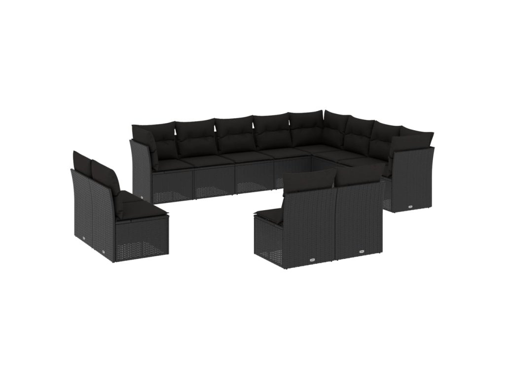 12dílná zahradní sedací souprava s poduškami černá polyratan 3218465