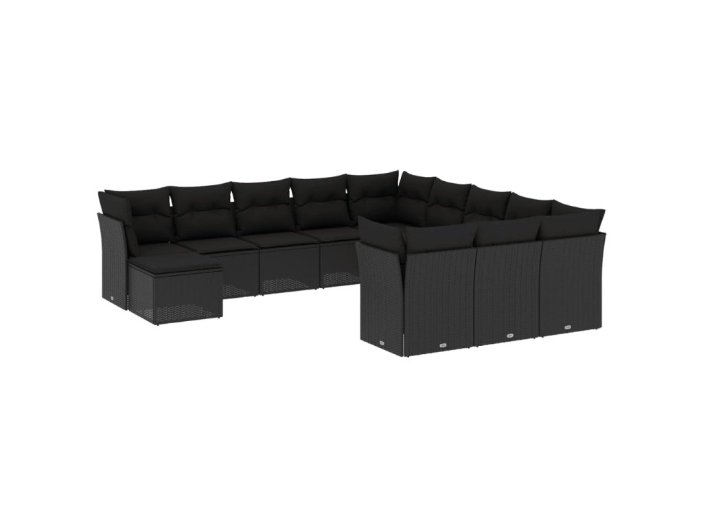 12dílná zahradní sedací souprava s poduškami černá polyratan 3218625