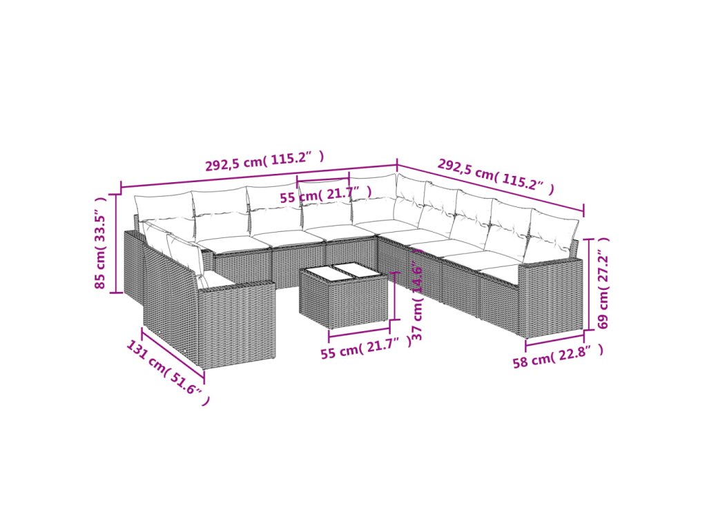 12dílná zahradní sedací souprava s poduškami černá polyratan 3219185