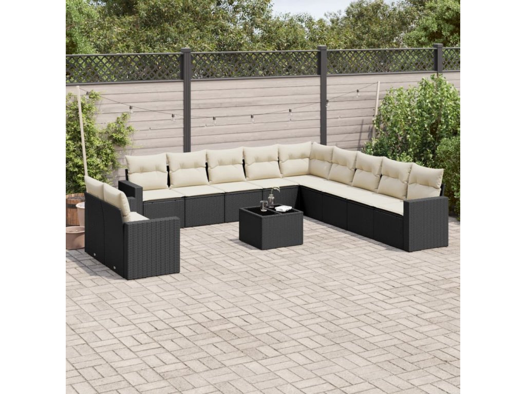 12dílná zahradní sedací souprava s poduškami černá polyratan 3219186