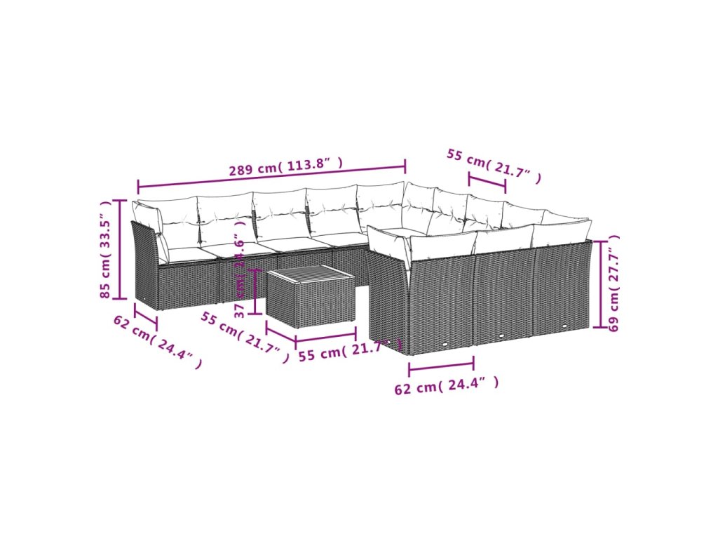 12dílná zahradní sedací souprava s poduškami černá polyratan 3223907