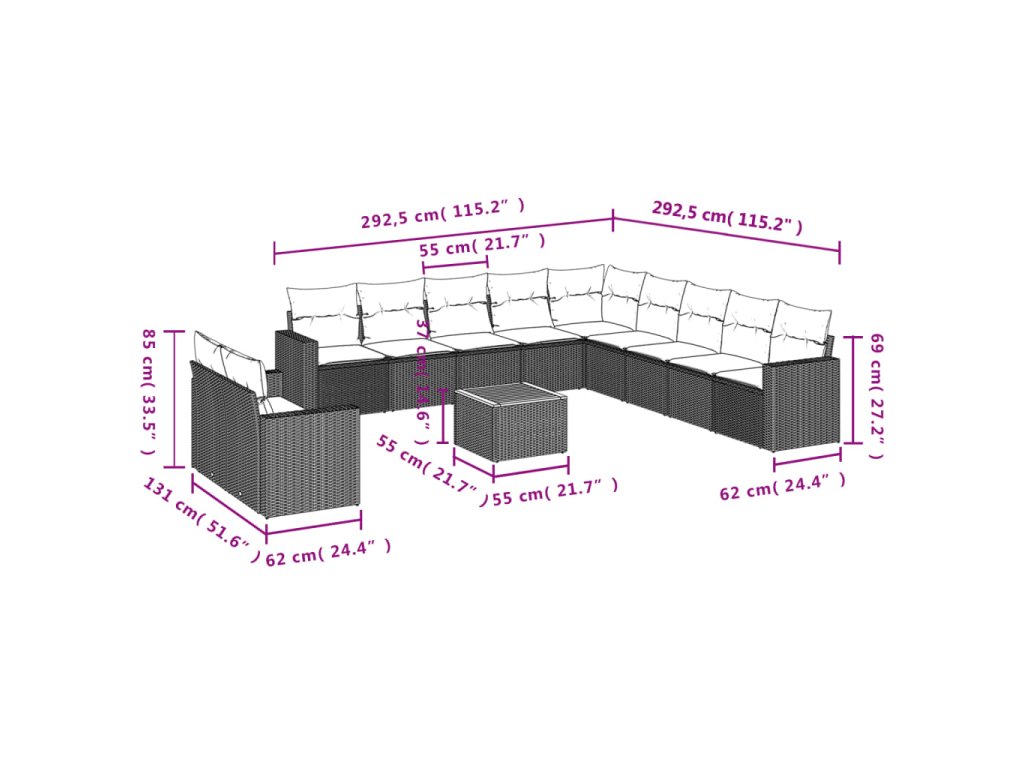 12dílná zahradní sedací souprava s poduškami černá polyratan 3224201