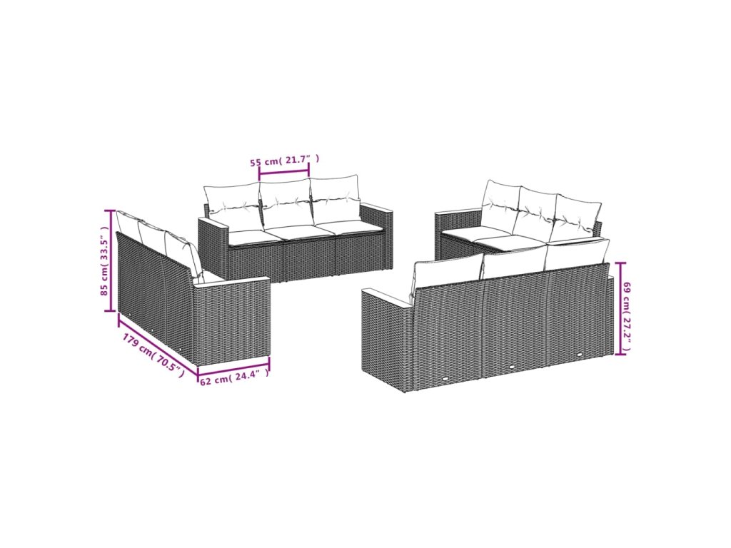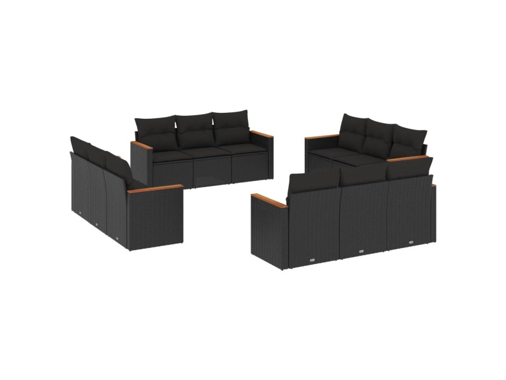 12dílná zahradní sedací souprava s poduškami černá polyratan 3225831