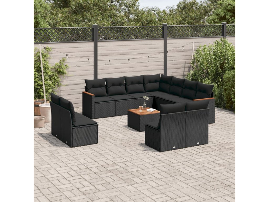 12dílná zahradní sedací souprava s poduškami černá polyratan 3226090