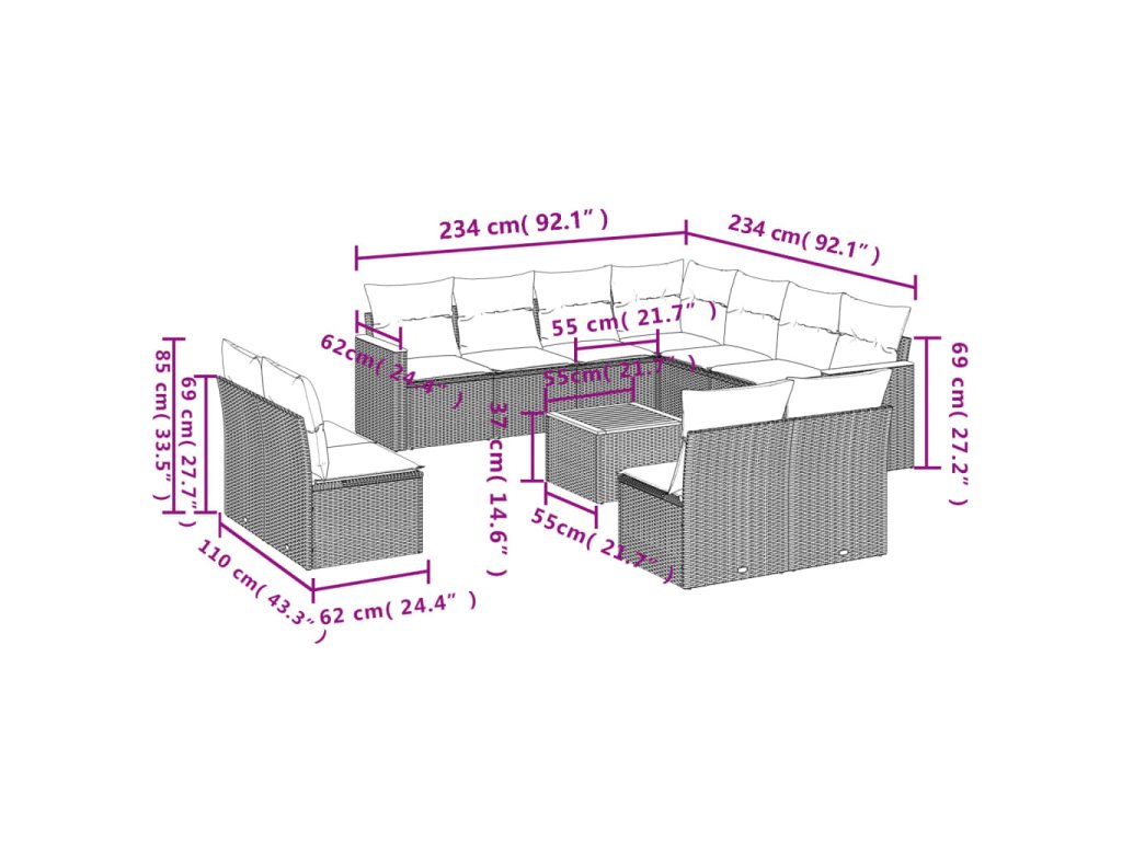 Tato zahradní sedací souprava je dokonalým doplňkem vaší zahrady, terasy nebo dvorku a poskytne vám pohodlné a příjemné místo, kde si můžete povídat s rodinou a přáteli nebo jen tak odpočívat a užívat si pobyt venku.