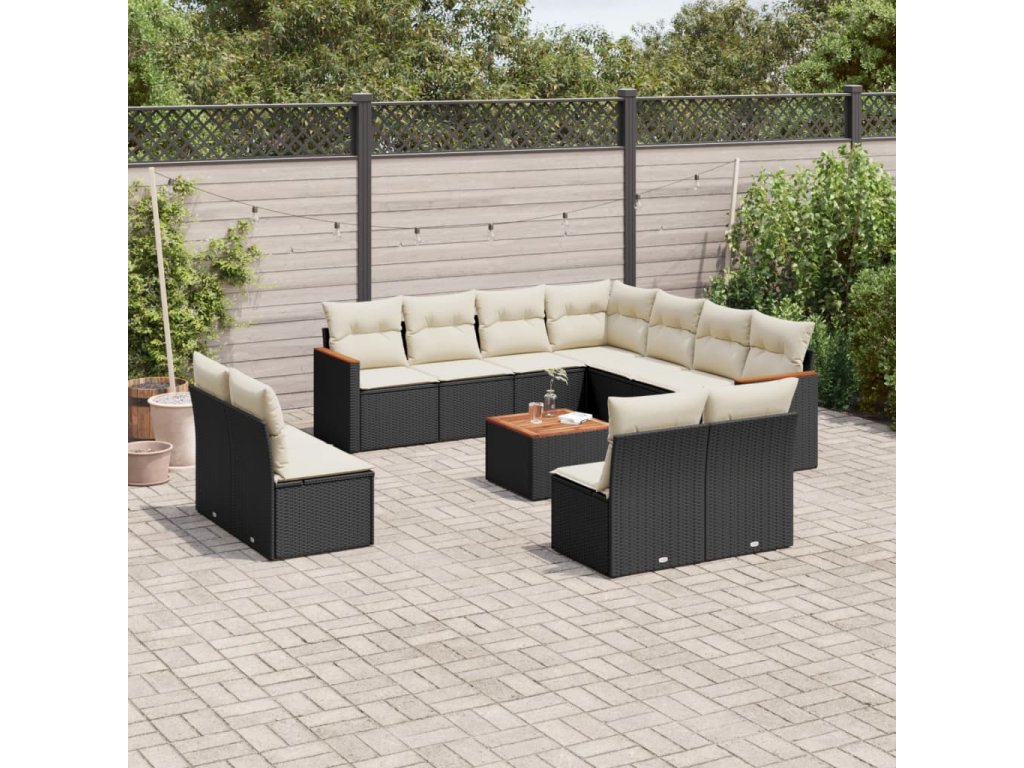 12dílná zahradní sedací souprava s poduškami černá polyratan 3226091