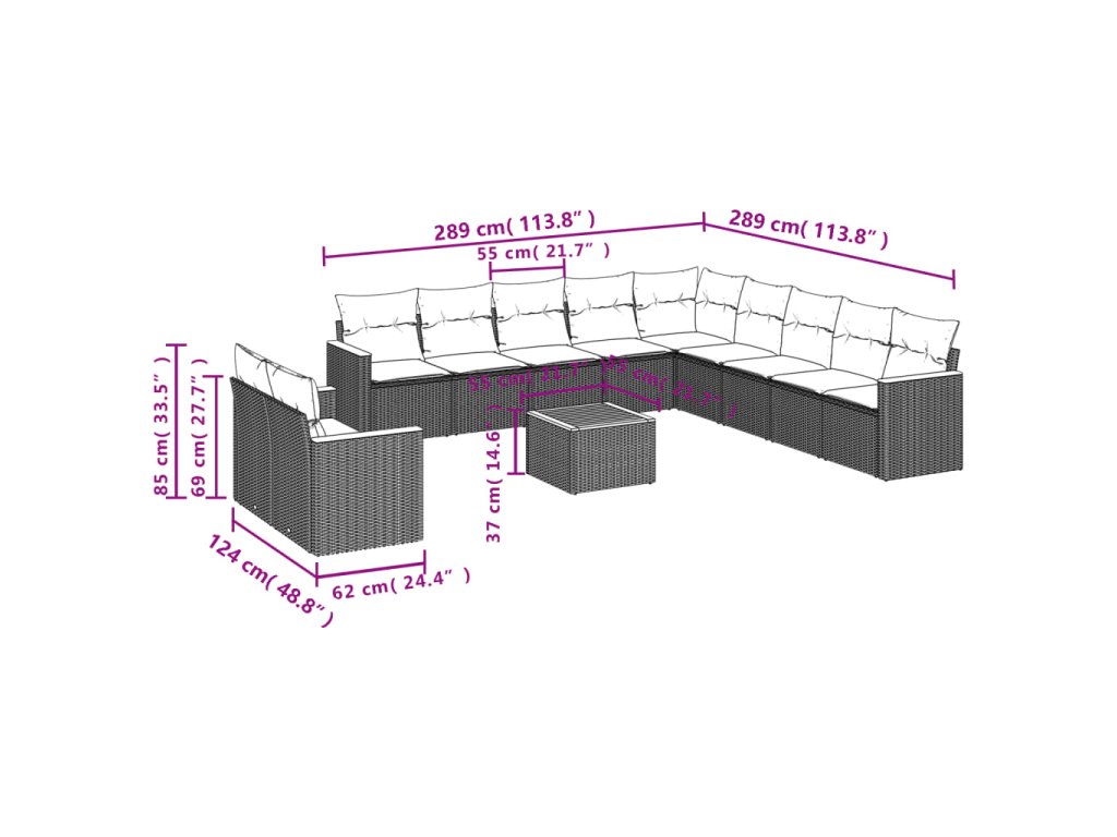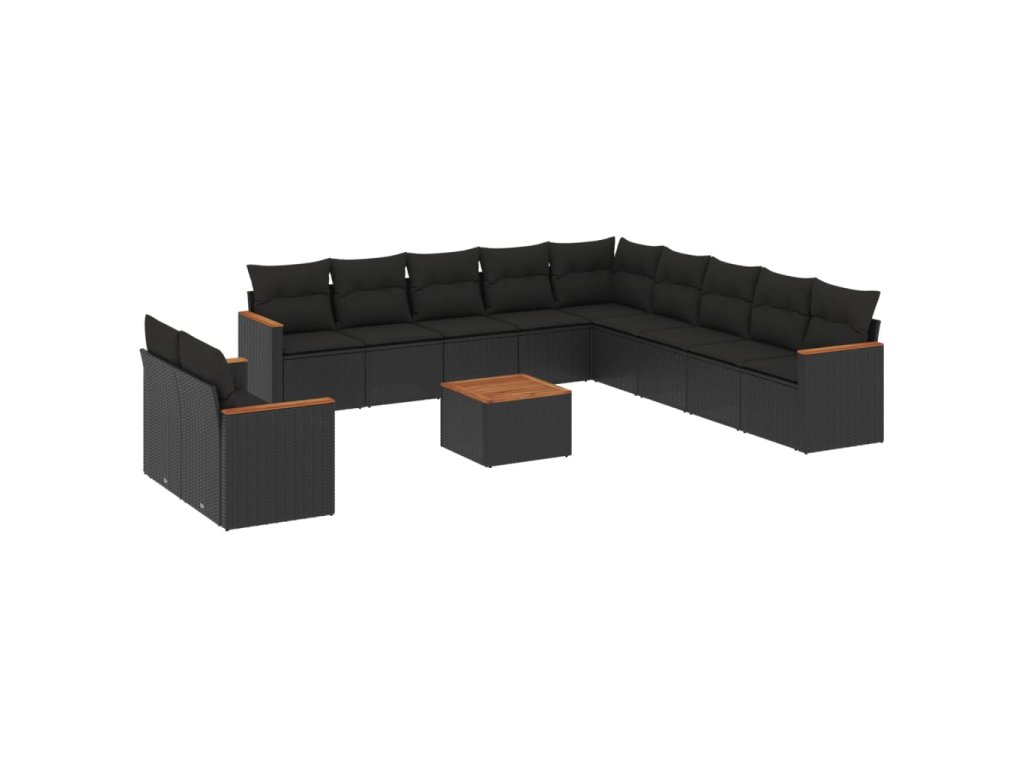 12dílná zahradní sedací souprava s poduškami černá polyratan 3226132