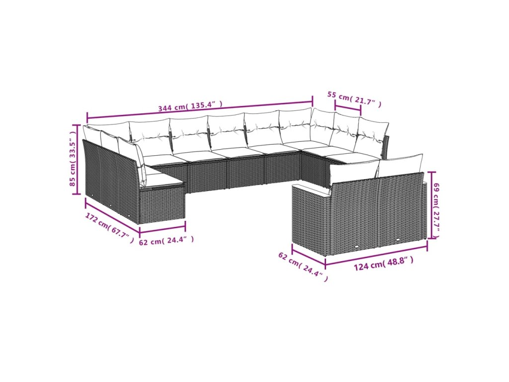 12dílná zahradní sedací souprava s poduškami černá polyratan 3226441