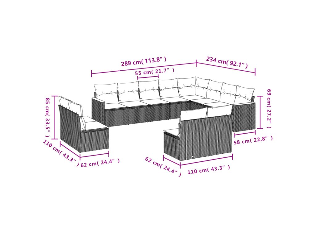 12dílná zahradní sedací souprava s poduškami černá polyratan 3226468